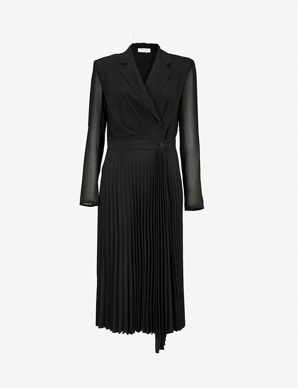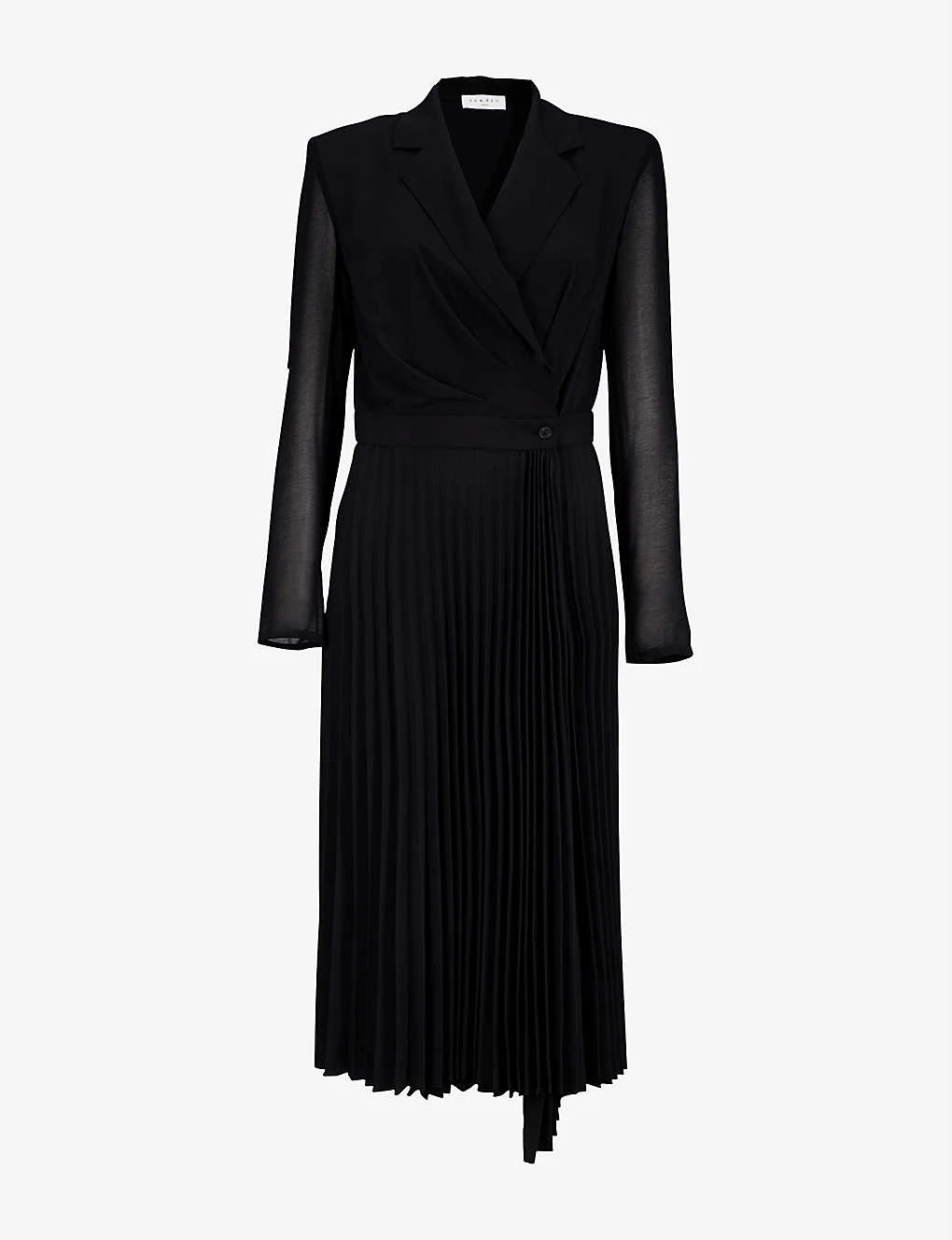 Cut to an A-line silhouette, fitted through the body with a flared skirt