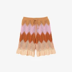- Relaxed fit, elasticated drawstring waist, all-over wave knit design, ruffled hem trim