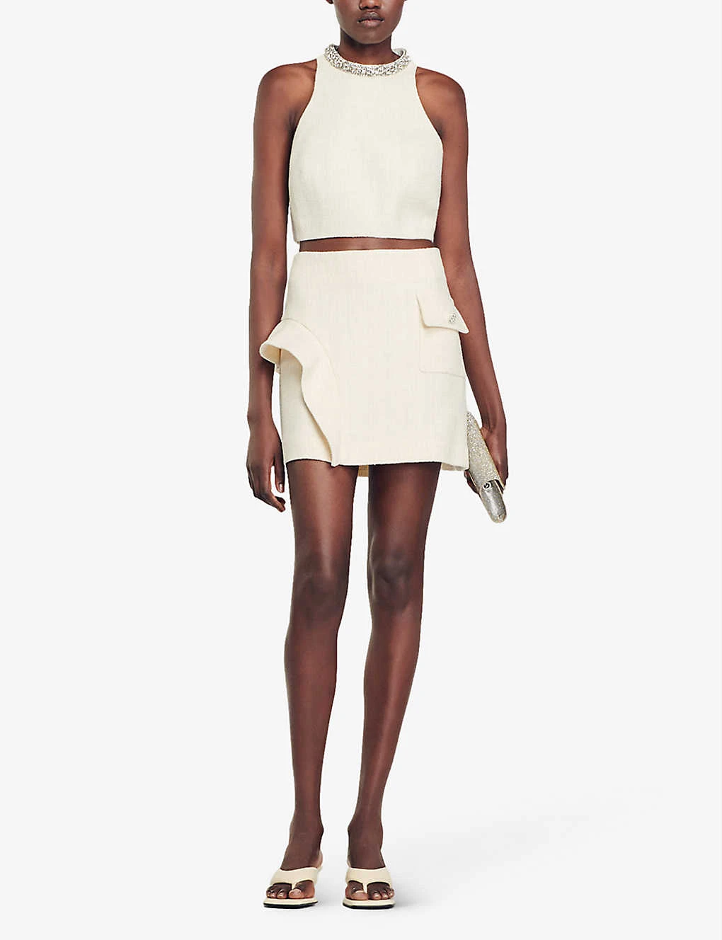 Be the first to review “Sandro Minie Jewel-button Side-ruffle Cotton-blend Mini Skirt” Cancel reply