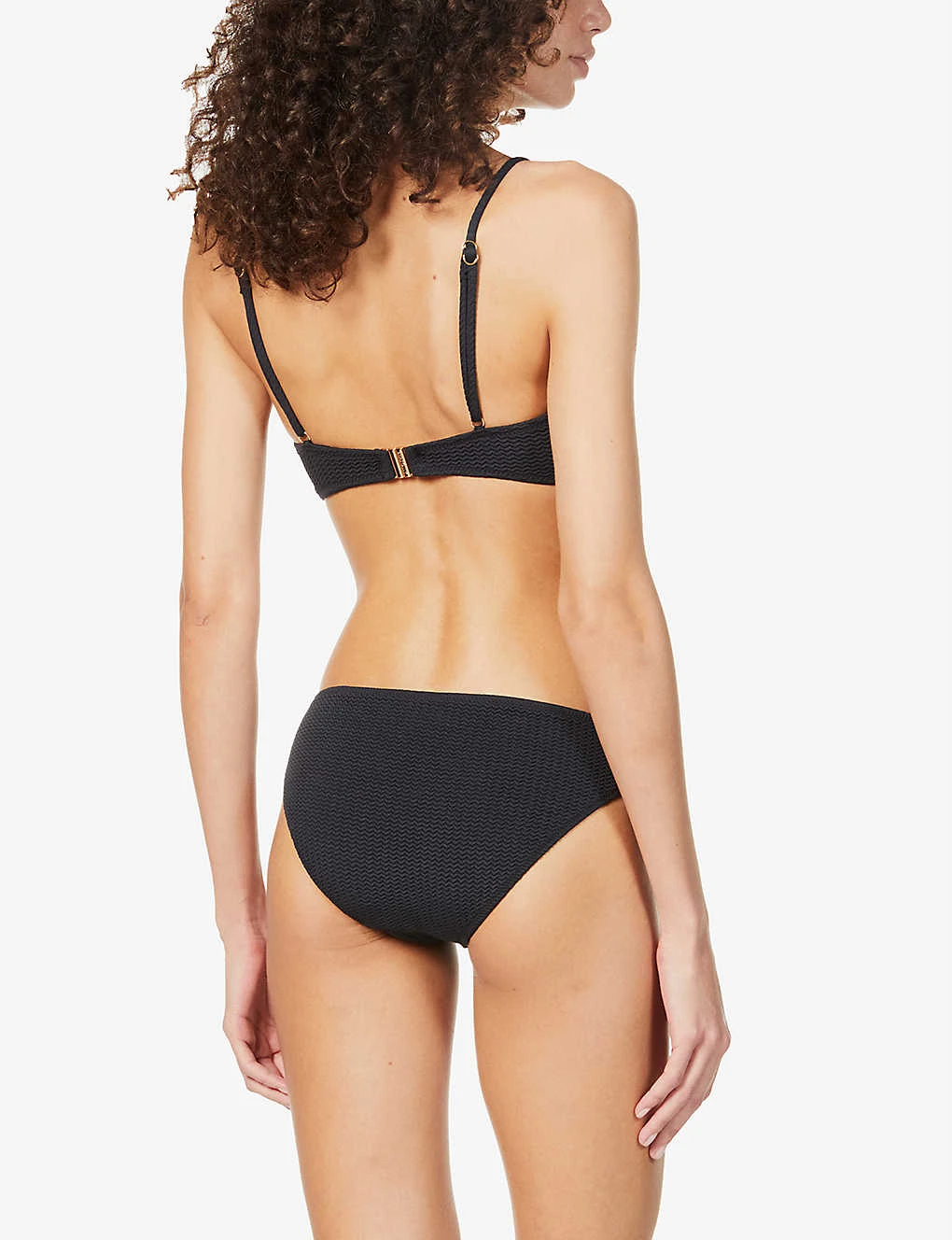 - V-neckline, adjustable straps, removable padded cups, all-over scallop texture