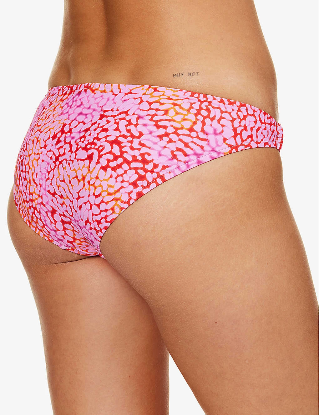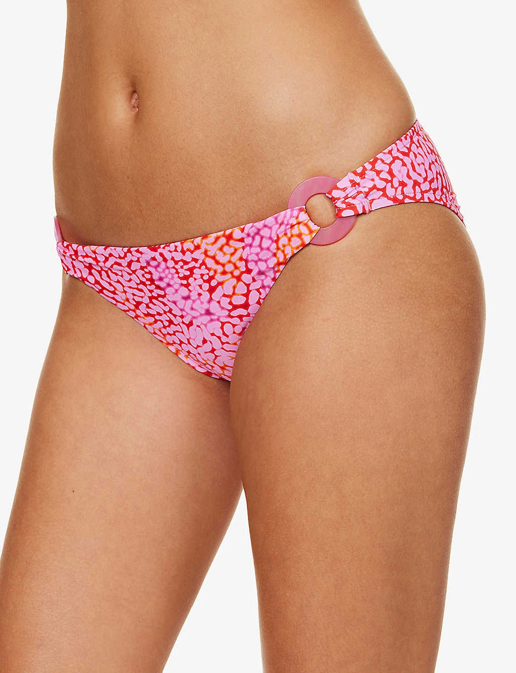 - Low rise, ring design at sides, all-over graphic print, medium-coverage at back, fully lined
