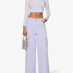 - Regular fit, mid-rise, elasticated waistband, two slip pockets at front, gradient pattern, all-over crystal embellishment