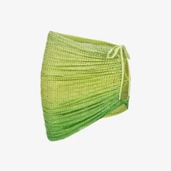 - Slim fit, mid-rise, elasticated waist, ruched self-tie at side with cut-outs, all-over crystal embellishment, gradient pattern, curved hem