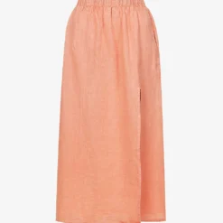 Split-hem Elasticated-waistband Linen Maxi Skirt