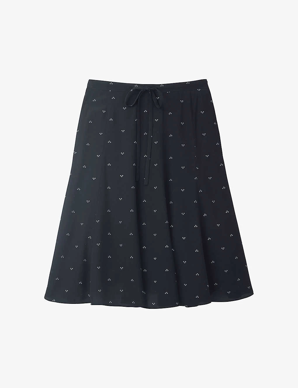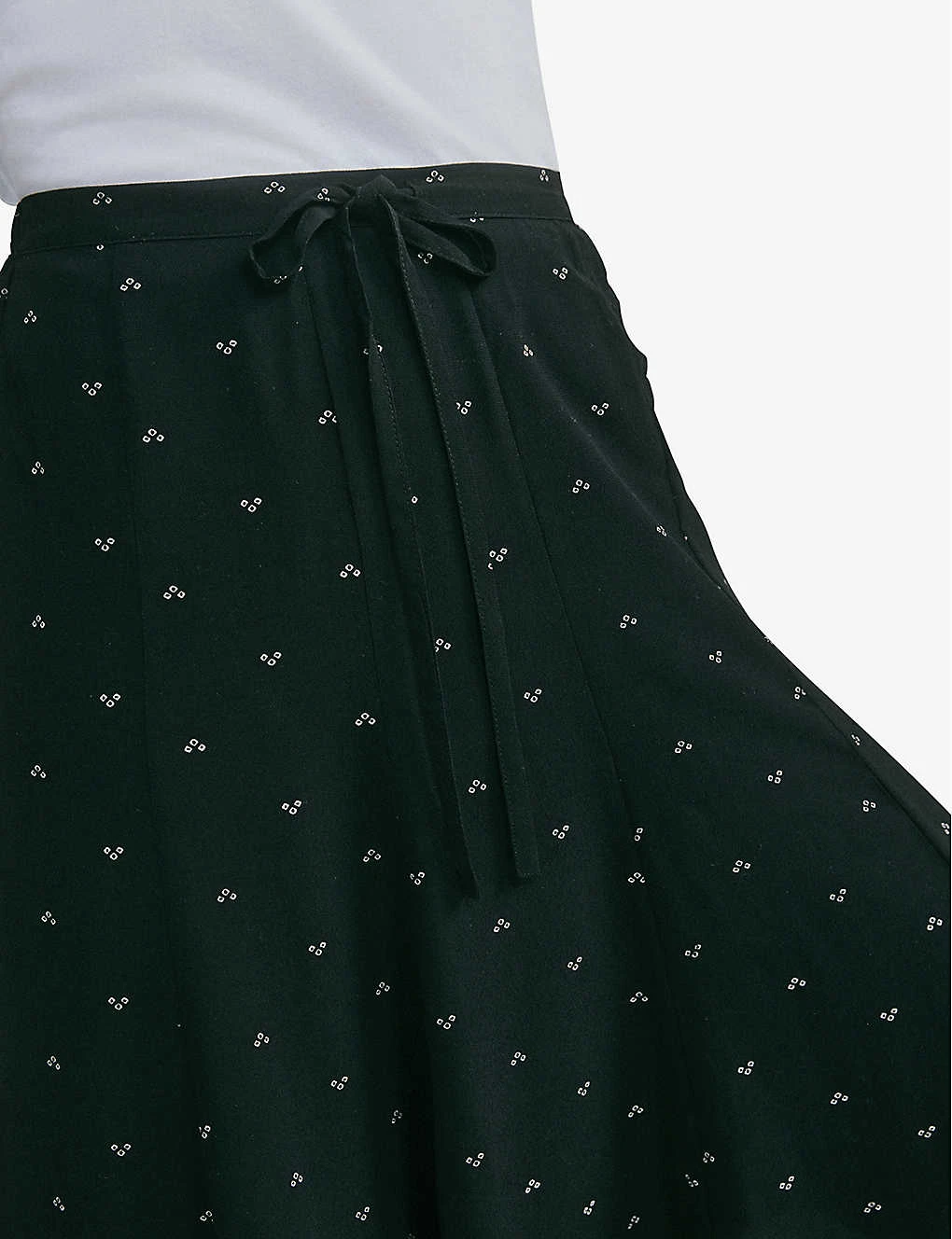 Spot-print Tie-waist Woven Midi Skirt