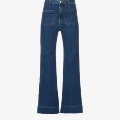 - Regular fit, high rise, flared leg, belt loops, contrast stitching, two patch pockets at front, darts at back, two patch pockets at back, brand patch at back