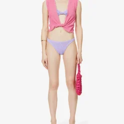 - Slim fit, mid-waist, all over striped print, all over crinkled texture, knitted, straight hem