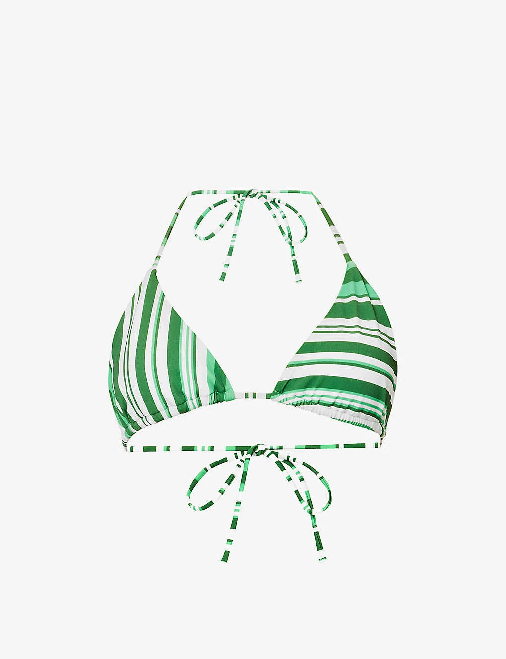 - Triangle cups, halterneck, self-tie straps, all-over stripe pattern