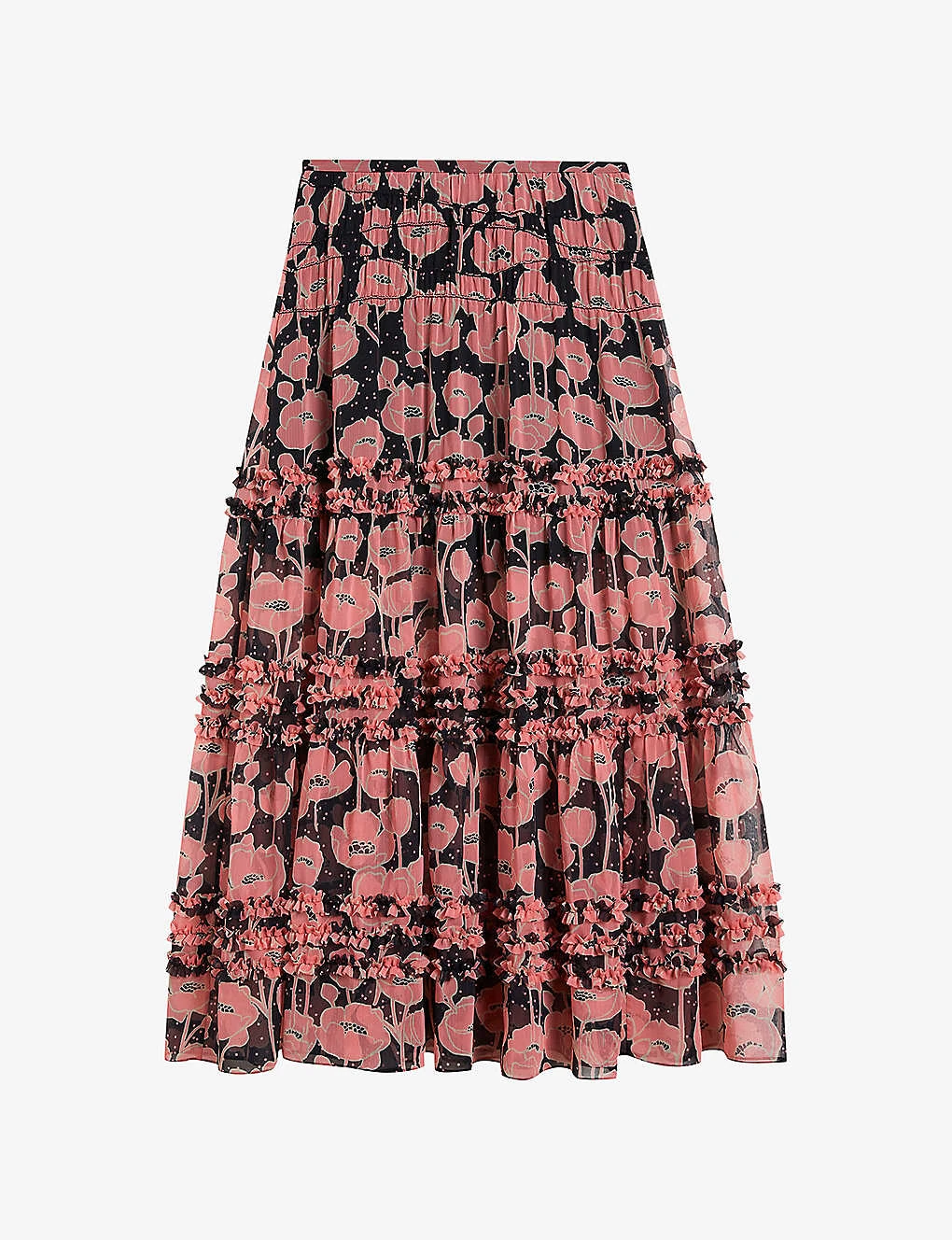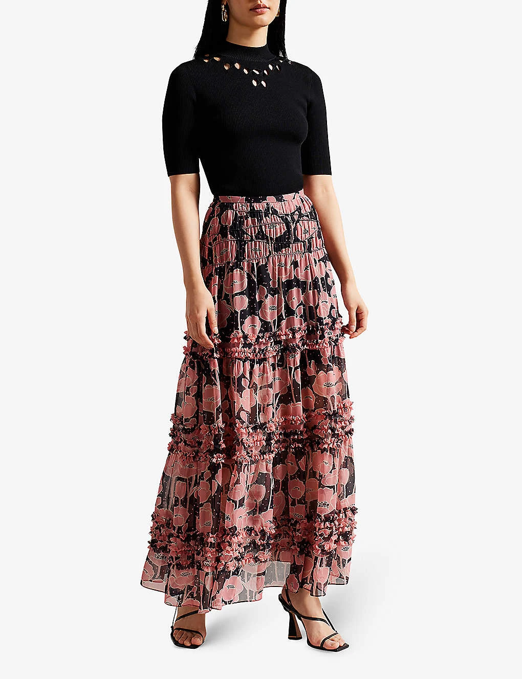 Ted Baker Allesaa Floral-print Tiered Recycled-polyester Maxi Skirt
