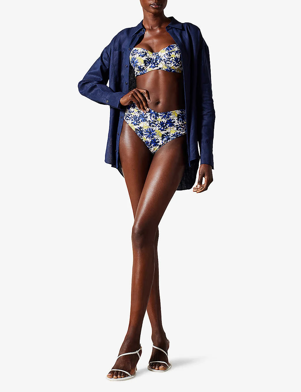 - Graphic print, balconette silhouette, wide straps