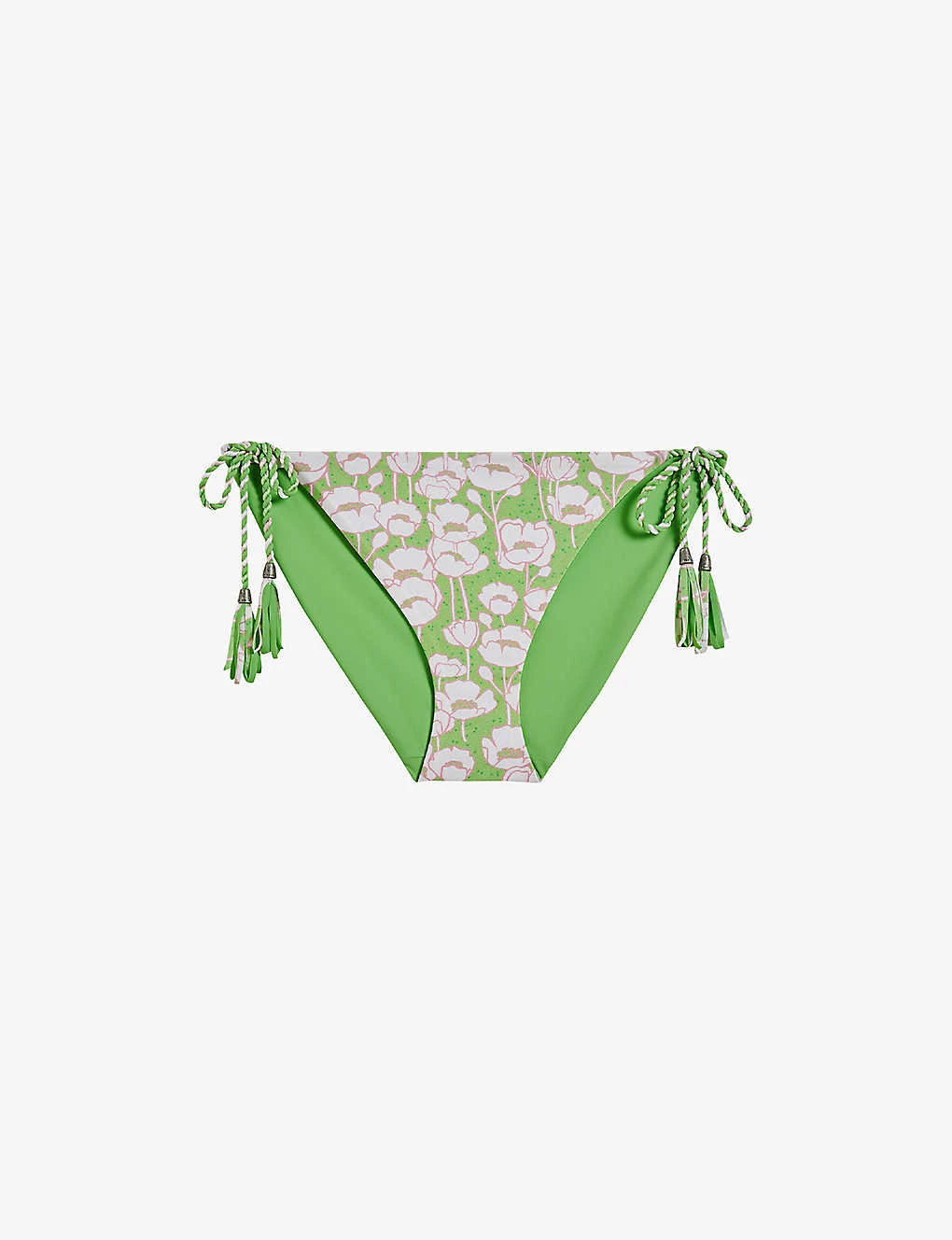 - Low rise, reversible design, adjustable side ties, all-over floral-print, medium coverage