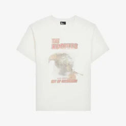 - Round neck, short sleeves, brand and eagle print at front, straight hem