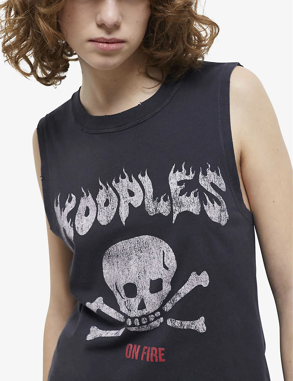THE KOOPLES Skull-print Sleeveless Cotton T-shirt