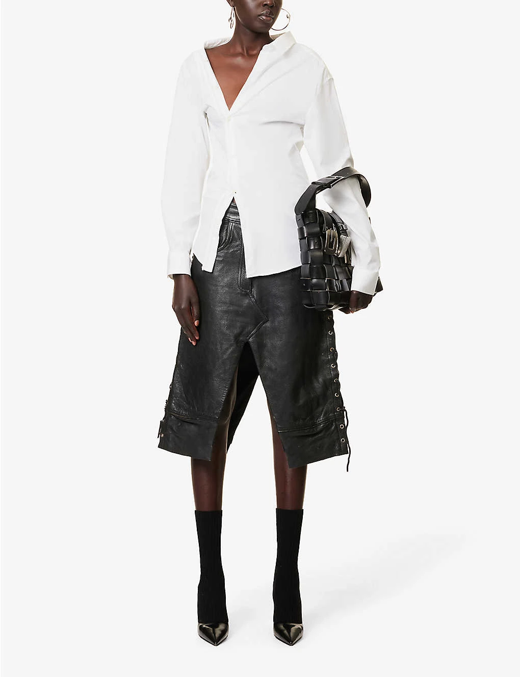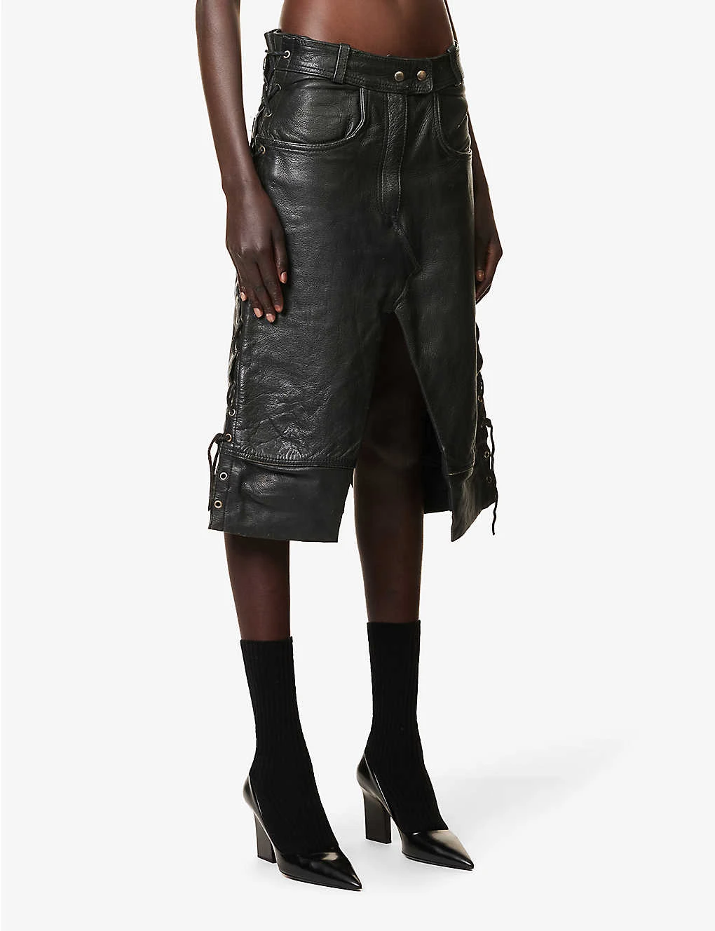 Be the first to review “Tumble-grain Patch-pocket Regular-fit Leather Skirt” Cancel reply