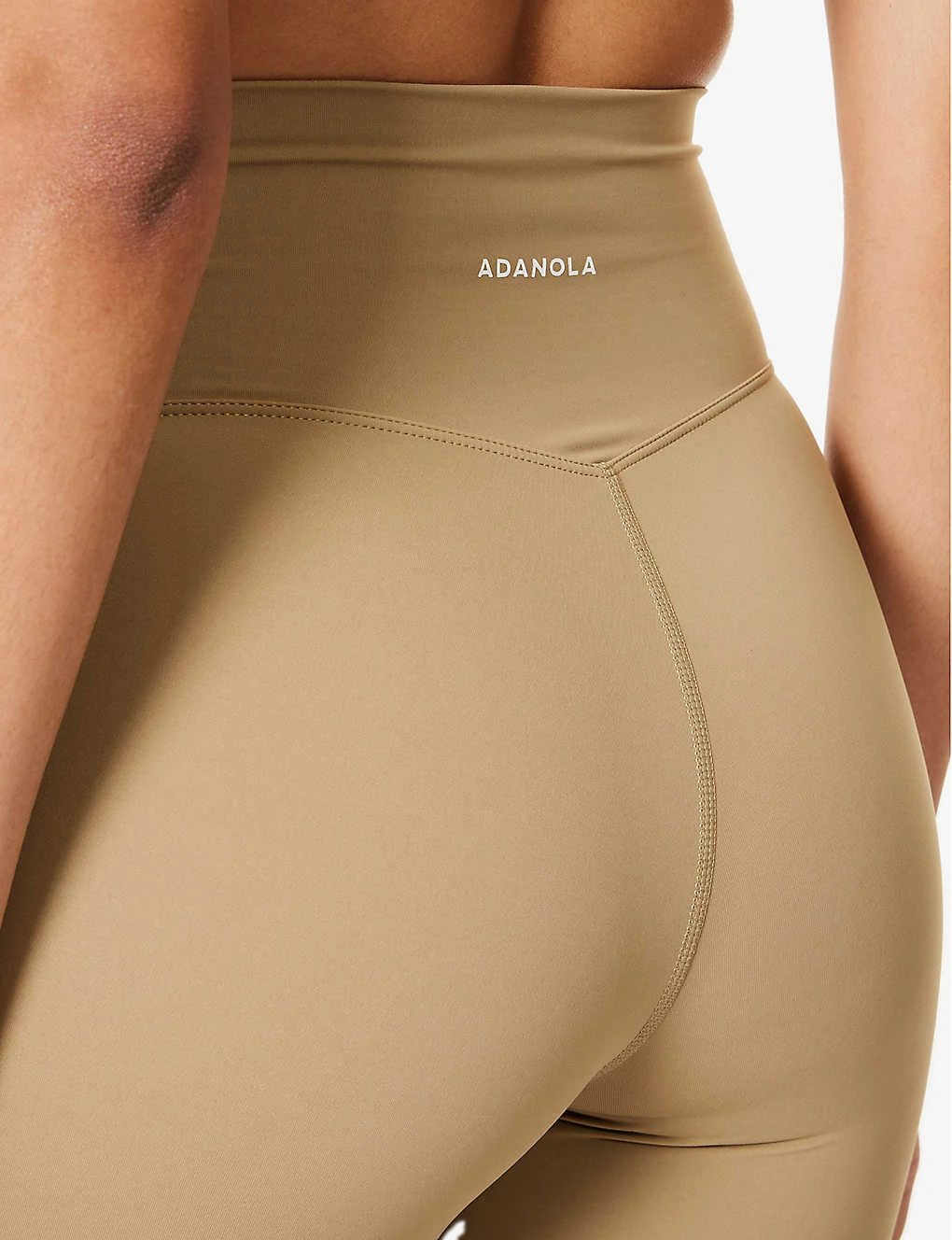 - Slim fit, high rise, elasticated waistband, exposed seam stitching