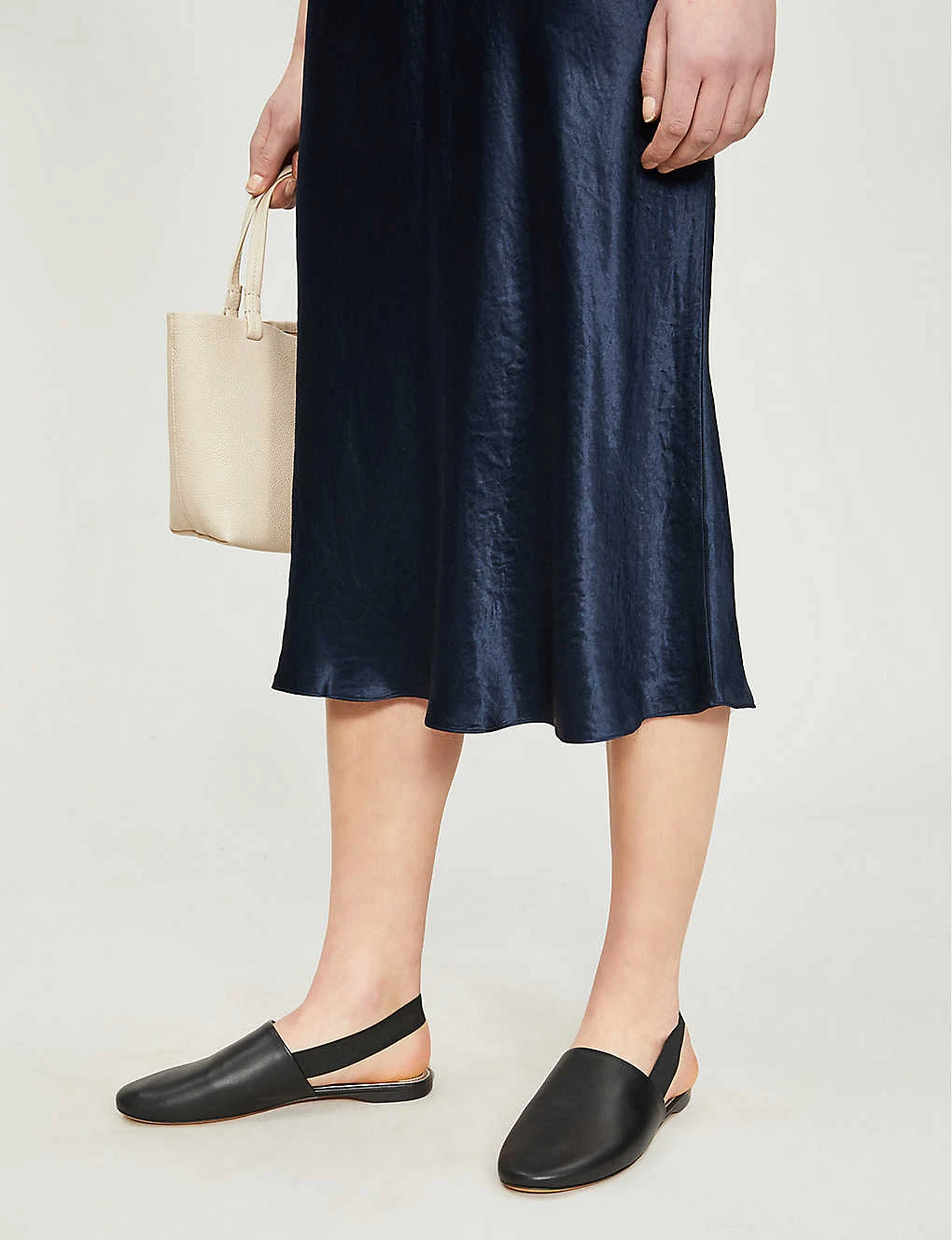 Vince satin skirt Slips on High-rise, elasticated waistband, crushed texture, flared hem 100% acetate Hand wash cold True to size Size small: Length 29″” Model is 5ft 10″” and wears a size small