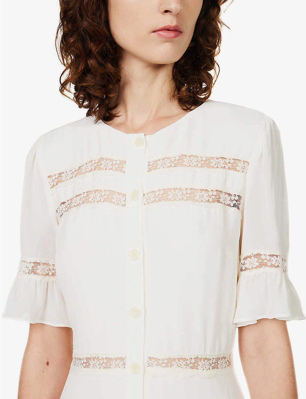 - Regular-fit, round neck, three-quarter-length sleeves, frilled trims, crochet lace trims,, fully lined
