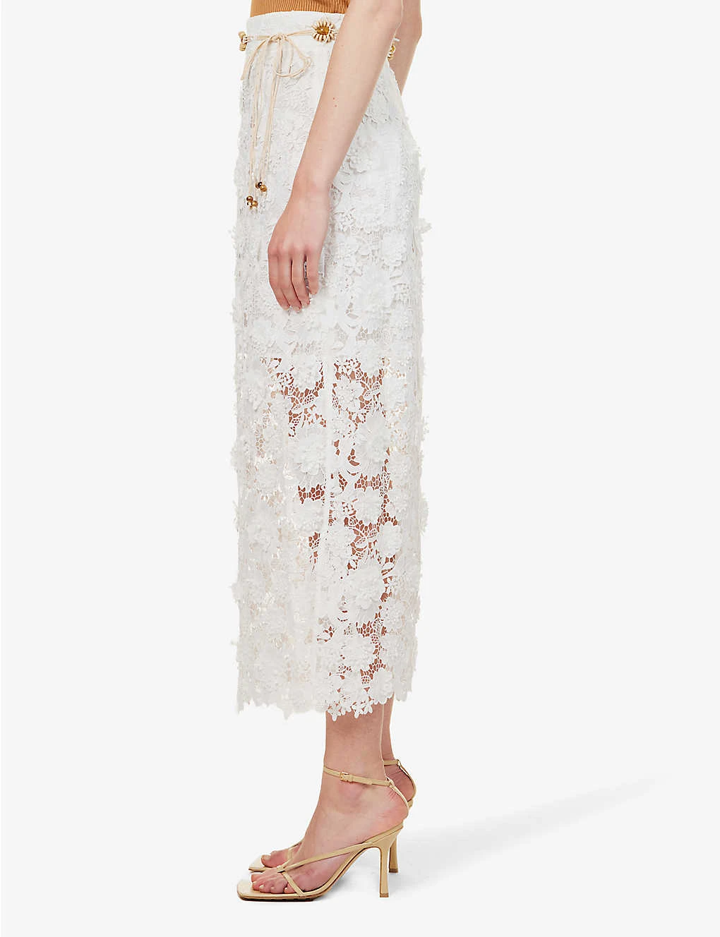 Zimmermann Raie Beaded-belt Floral-lace Midi Skirt
